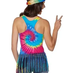 Spirit Halloween Tie Dye Fringe Tank Top