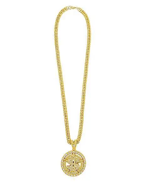 Make your pimp costume stand out when you put on this goldtone dollar sign chain necklace! You’ll like the perfect big spender with your big bling.